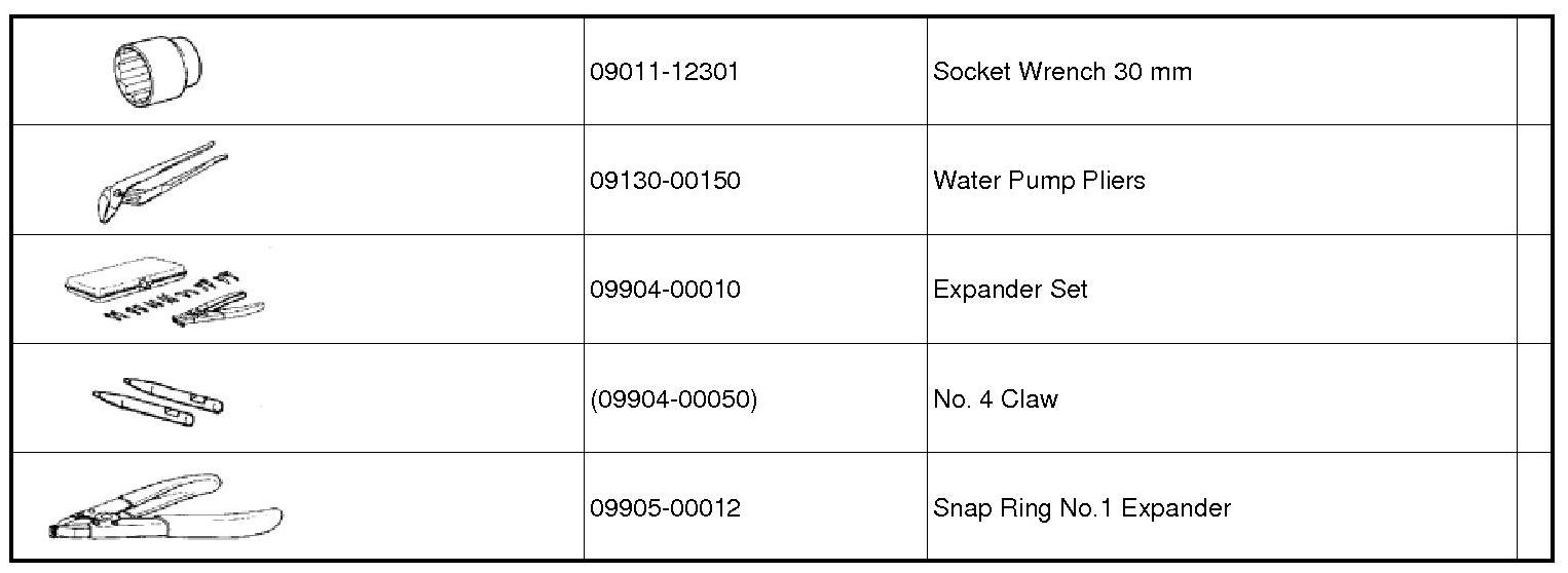 PREPARATION: DRIVE SHAFT: RECOMMENDED TOOLS