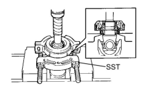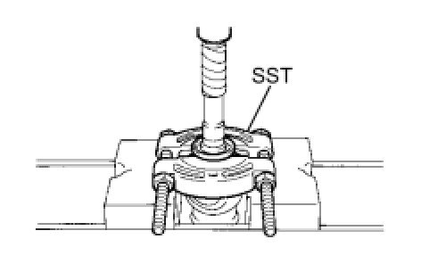 (b) Using SST and a press, remove the No. 1 center support bearing assembly and No. 2 dust deflector.