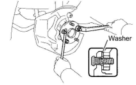 (a) Temporarily install a plate washer and nut to a new hub bolt as shown in the illustration.