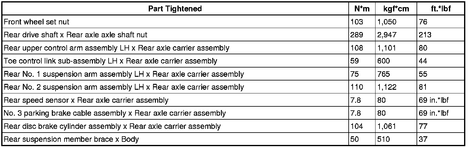 SERVICE SPECIFICATIONS: DRIVE SHAFT: TORQUE SPECIFICATIONS