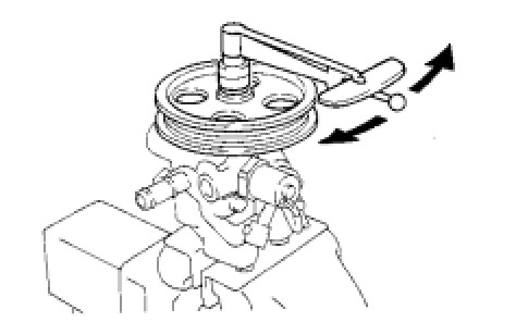 (a) Using SST to stop the vane pump pulley from rotating, torque the pulley set nut.