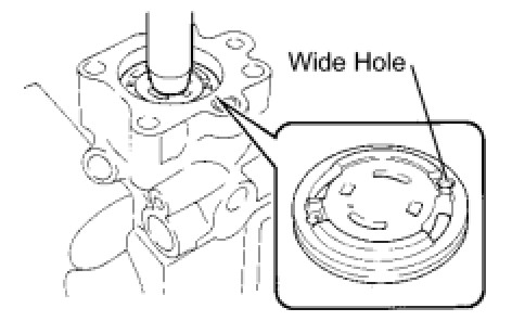 HINT: Align the wide hole of the vane pump side plate rear and long cam ring straight pin.