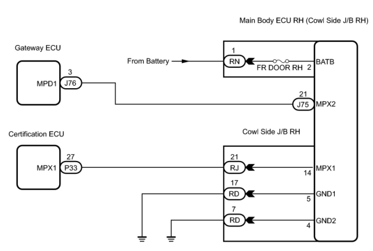 - This DTC is detected when communication between the main body ECU RH (cowl side J/B RH) and gateway ECU stops for more than 10 seconds.