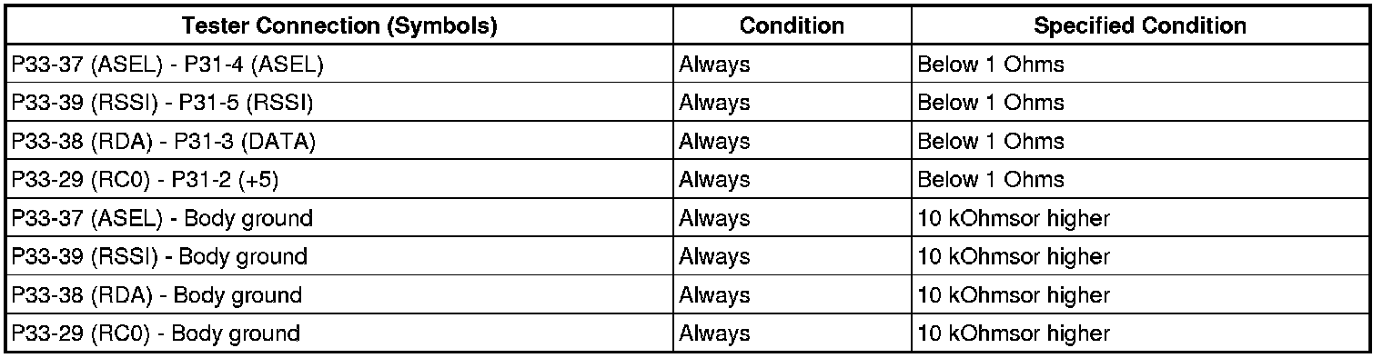 2. CHECK HARNESS AND CONNECTOR (DOOR CONTROL RECEIVER - ELECTRICAL KEY ANTENNA)