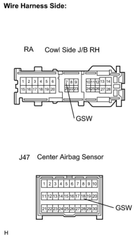 (b) Disconnect the center airbag sensor J47 and J/B RA connectors.