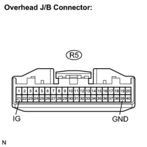2. CHECK WIRE HARNESS (OVERHEAD J/B - BATTERY AND BODY GROUND)