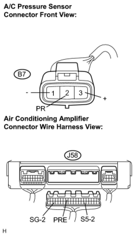 2. CHECK WIRE HARNESS (PRESSURE SENSOR - A/C AMPLIFIER)
