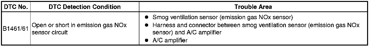 AIR CONDITIONING: AIR CONDITIONING SYSTEM: B1461/61: Emission Gas NOx Sensor Circuit