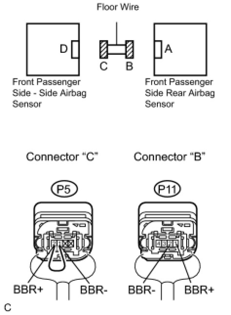 (c) Check that the connectors are properly connected to the front passenger side - side airbag sensor and the front passenger side rear airbag sensor.
