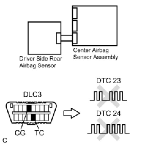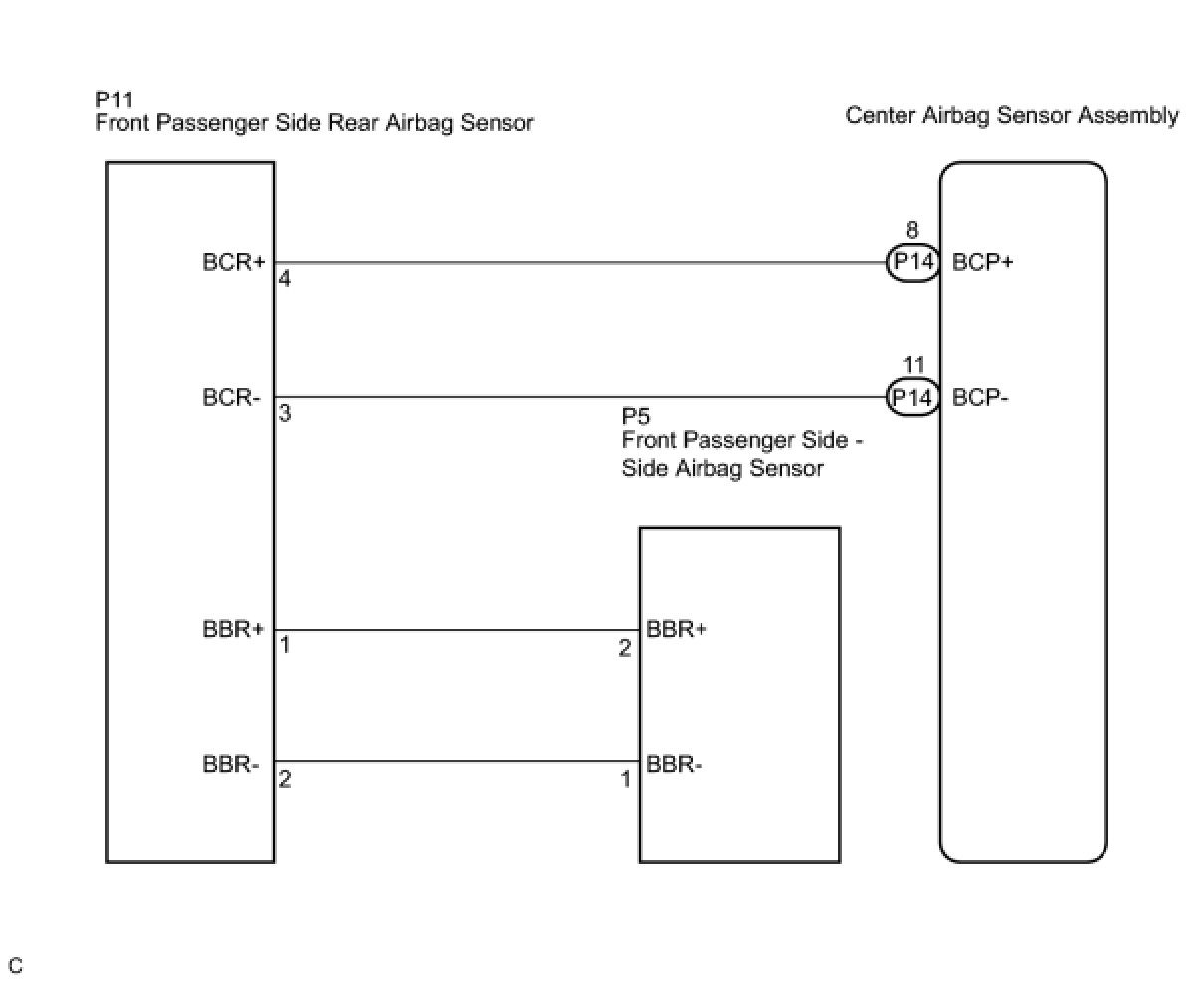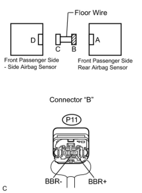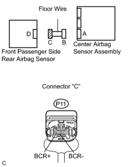 (c) Check that the connectors are properly connected to the center airbag sensor assembly and the front passenger side rear airbag sensor.