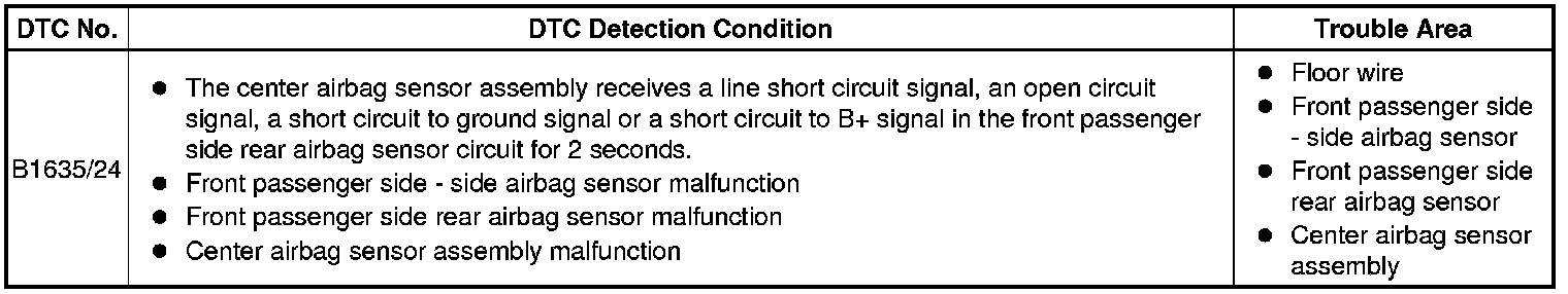 DTC B1635/24 - Front Passenger Side Rear Airbag Sensor Circuit Malfunction