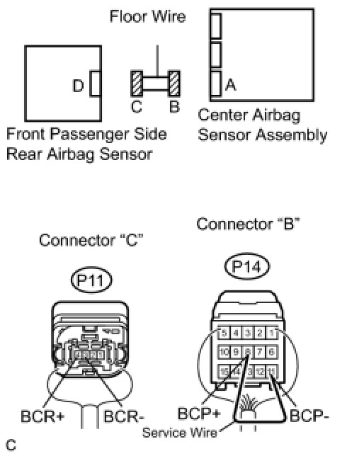 (b) Using a service wire, connect P14-8 (BCP+) and P14-11 (BCP-) of connector "B".