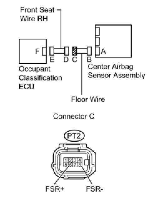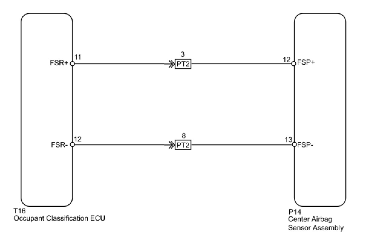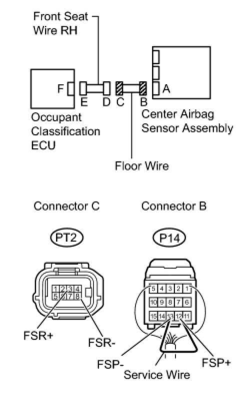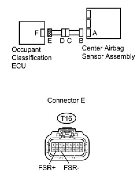 The occupant classification system circuit consists of the center airbag sensor assembly and the occupant classification system.
