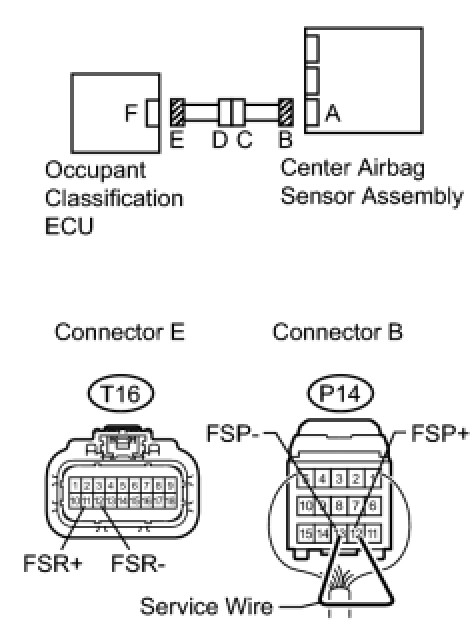 (b) Using a service wire, connect terminals 12 (FSP+) and 13 (FSP-) of connector B.