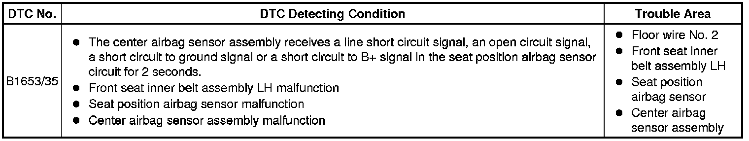DTC B1653/35 is recorded when a malfunction is detected in the seat position airbag sensor circuit.