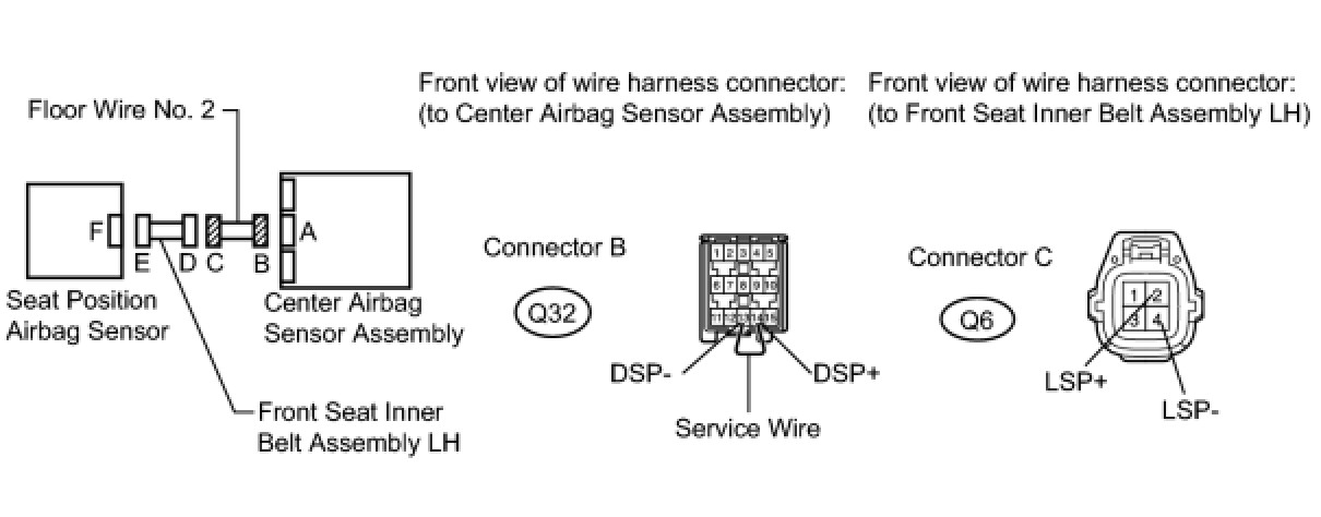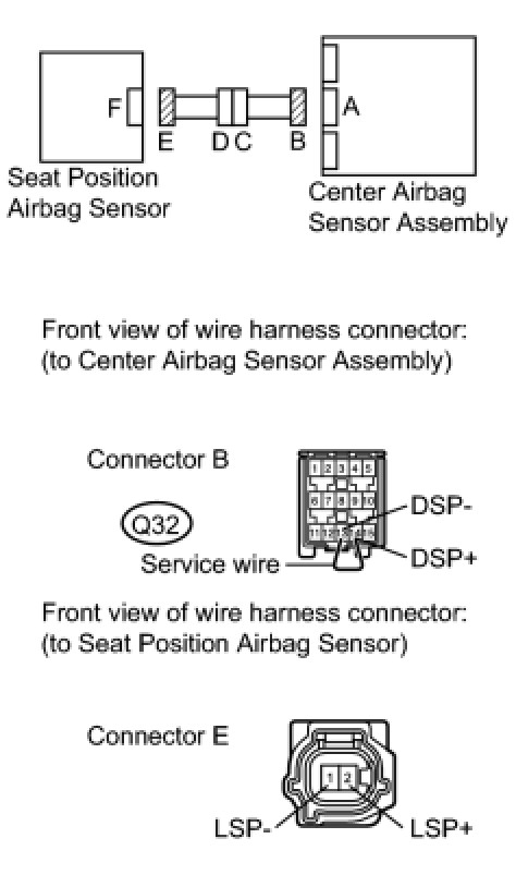 (b) Using a service wire, connect Q32-14 (DSP+) and Q32-13 (DSP-) of connector "B".