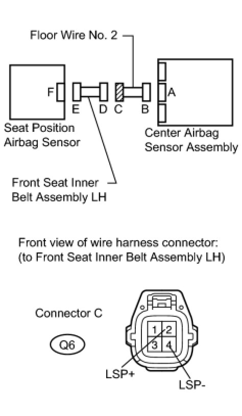 (c) Check that the connectors are properly connected to the center airbag sensor assembly, seat position airbag sensor and front seat inner belt assembly LH.