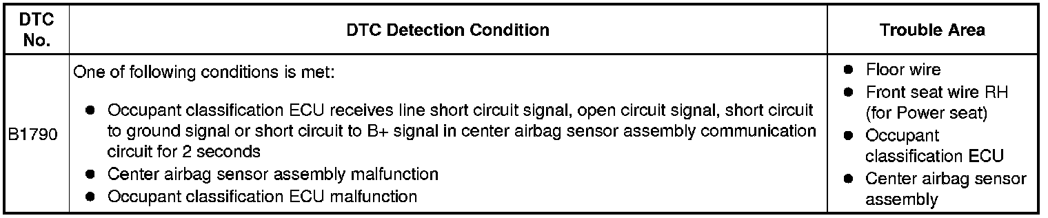 DTC B1790 - Center Airbag Sensor Assembly Communication Circuit Malfunction
