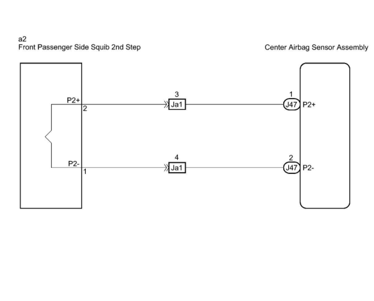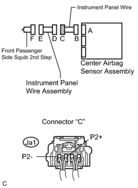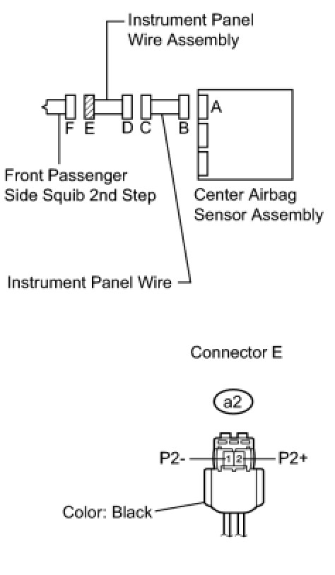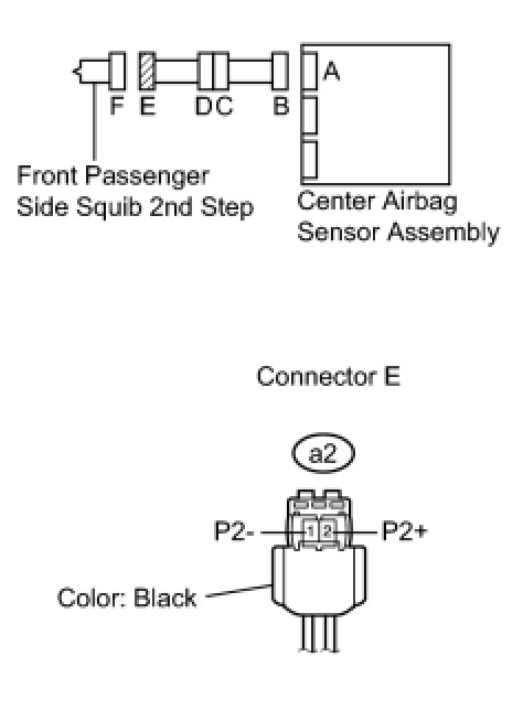 The front passenger side squib 2nd step circuit consists of the center airbag sensor assembly and the front passenger airbag assembly.
