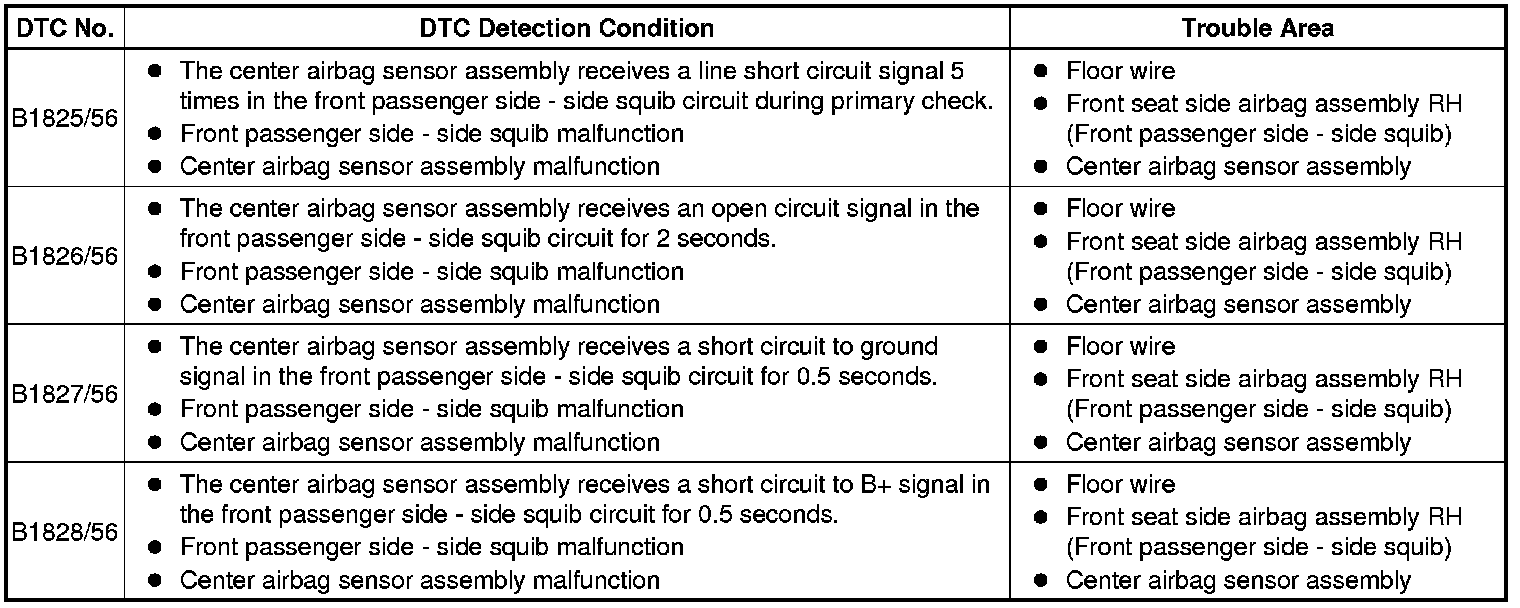 DTC B1825/56 - Short in Front Passenger Side - Side Squib Circuit