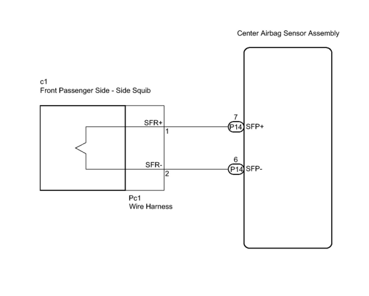The front passenger side - side squib circuit consists of the center airbag sensor assembly and the front seat side airbag assembly RH.
