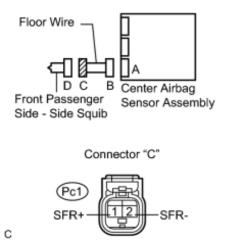 2. CHECK FLOOR WIRE (FRONT PASSENGER SIDE - SIDE SQUIB CIRCUIT)