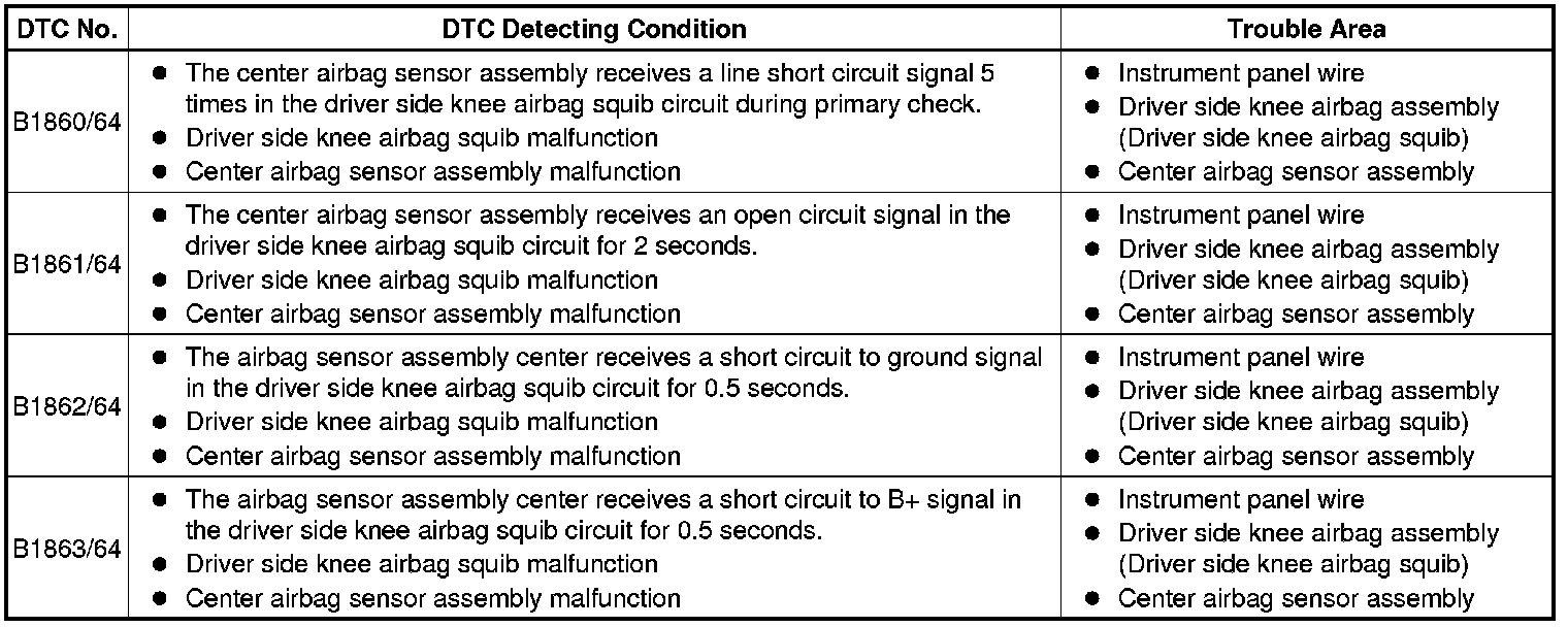 DTC B1860/64 - Short in Driver Side Knee Airbag Squib Circuit