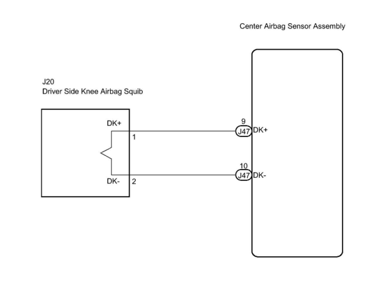 The driver side knee airbag squib circuit consists of the center airbag sensor assembly and the driver side knee airbag assembly.