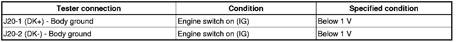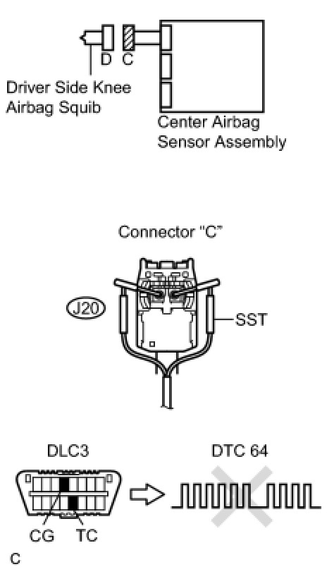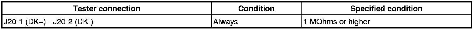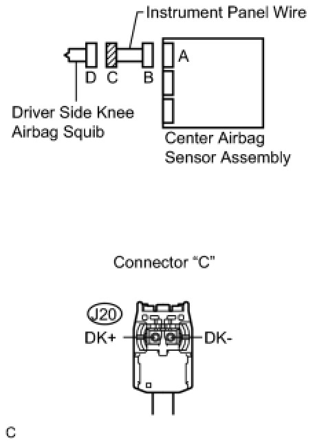 Never connect a tester to the driver side knee airbag assembly (driver side knee airbag squib) for measurement, as this may lead to a serious injury due to airbag deployment.