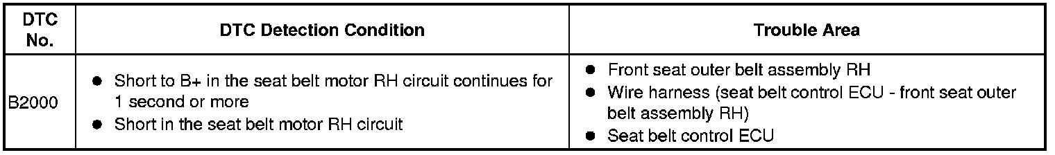 DTC B2000 - Short to B+ in Seat Belt Motor RH Circuit
