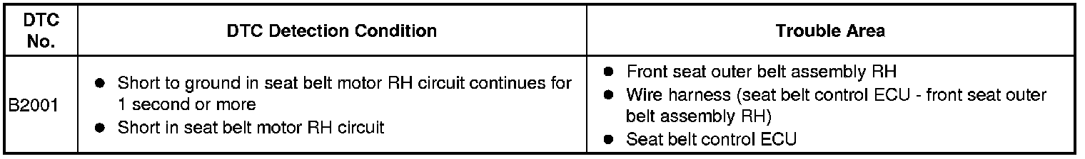 DTC B2001 - Short to GND in Seat Belt Motor RH Circuit