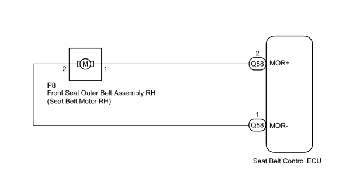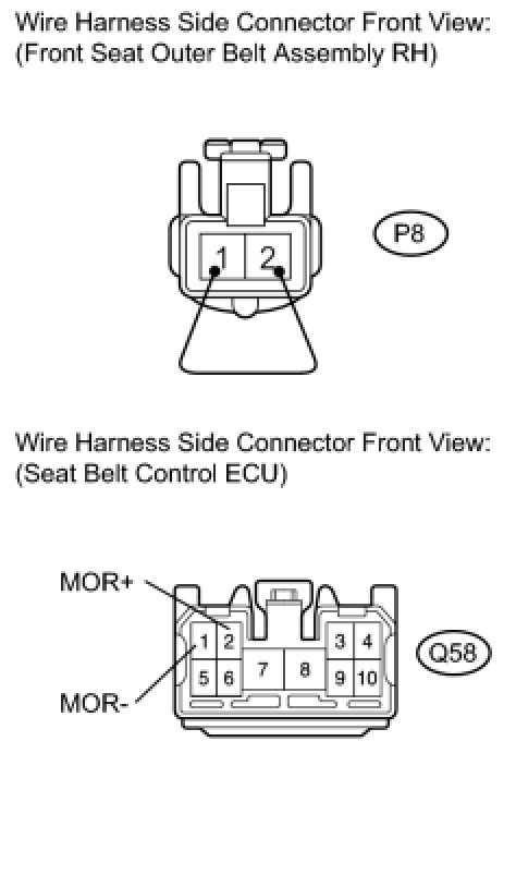 (f) Reconnect the Q58 connector of the seat belt control ECU and P8 connector of the front seat outer belt assembly RH.
