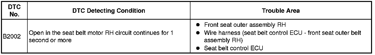 DTC B2002 - Open in Seat Belt Motor RH Circuit