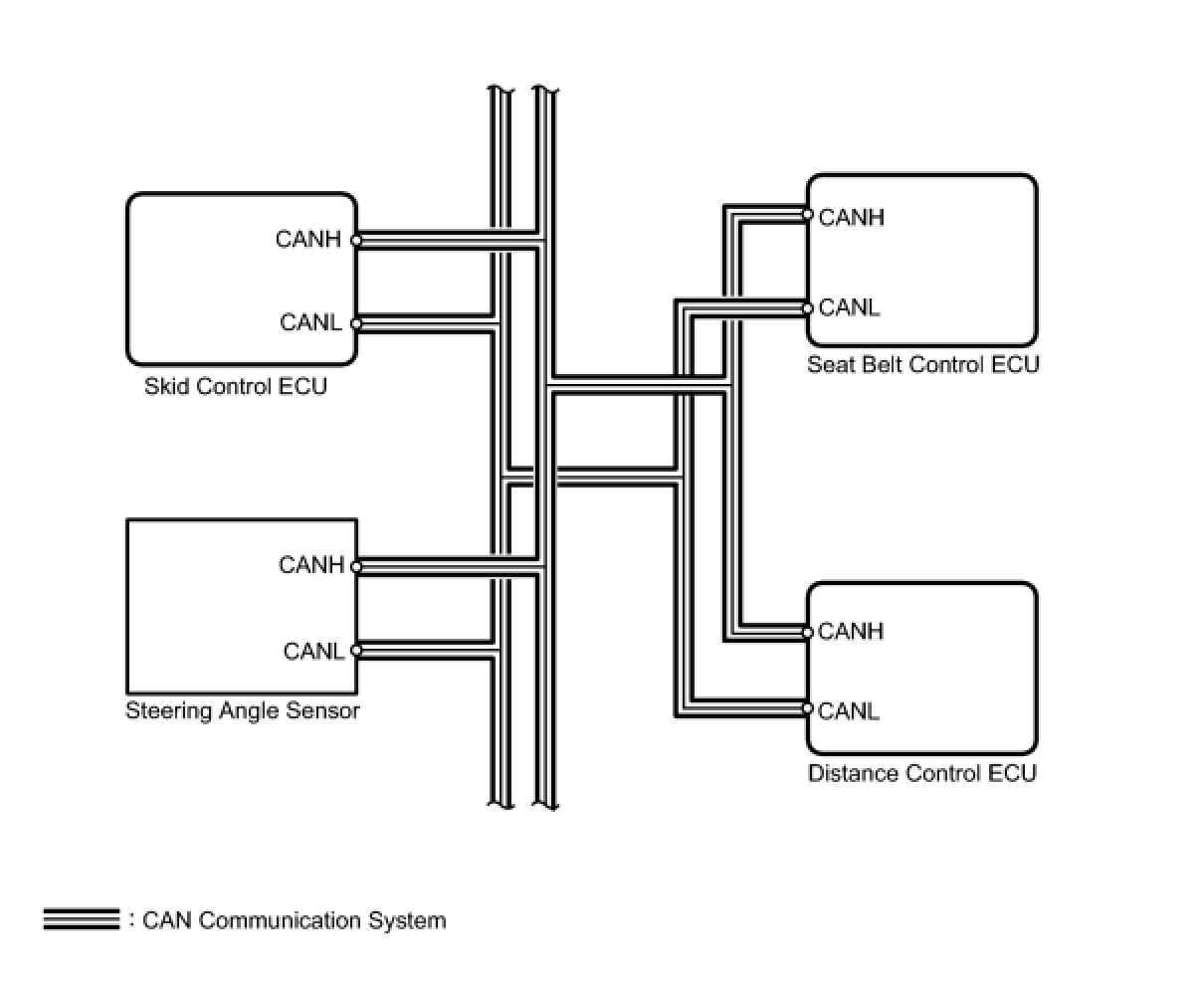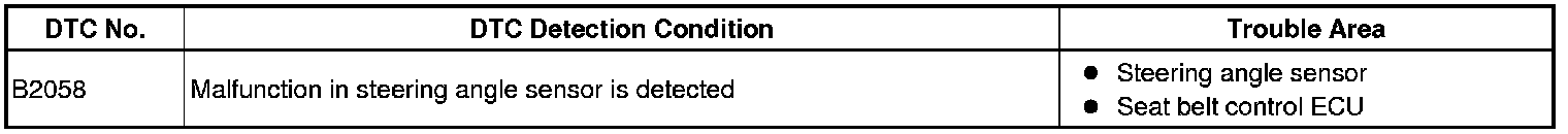 This DTC is output when a malfunction in the steering angle sensor is detected. This circuit consists of the steering angle sensor and seat belt control ECU. Signals are sent from the steering sensor using CAN communication.