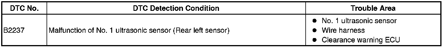 The clearance warning ECU detects obstacles based on signals received from the rear left sensor. If the rear left sensor's circuit has an open, short or other malfunction, it will not function normally.