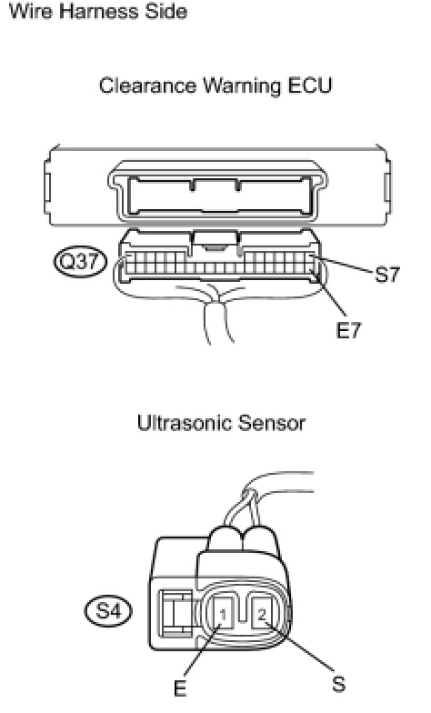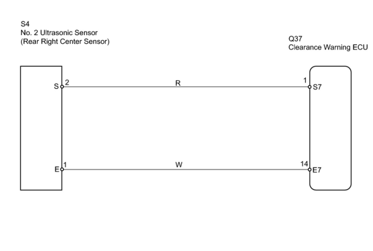 The clearance warning ECU detects obstacles based on signals received from the rear right center sensor. If the rear right center sensor's circuit has an open, short or other malfunction, it will not function normally.