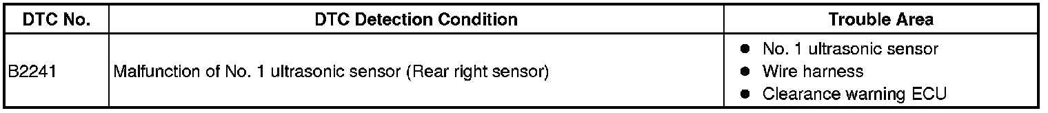 The clearance warning ECU detects obstacles based on signals received from the rear right sensor. If the rear right sensor's circuit has an open, short or other malfunction, it will not function normally.