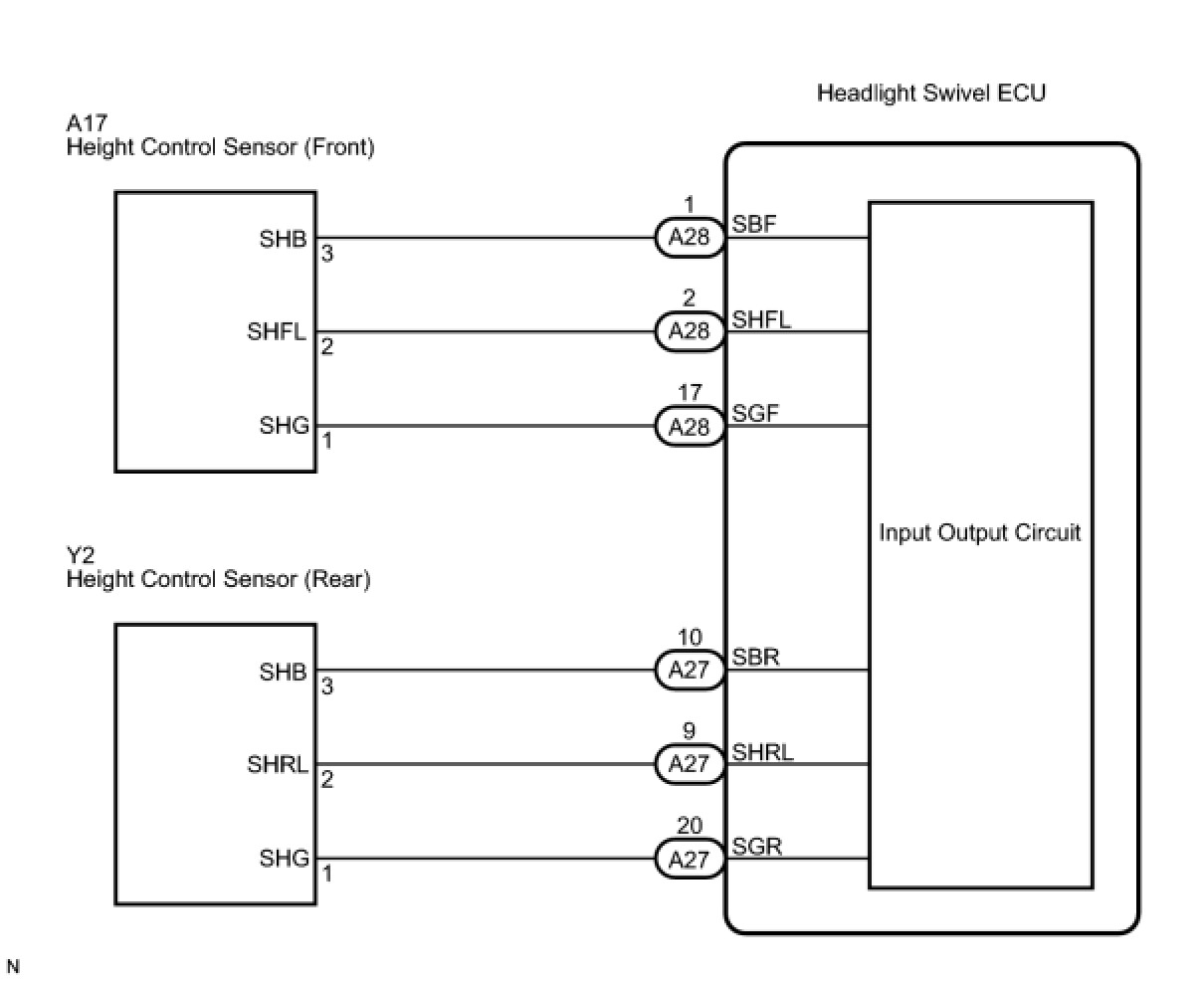 The AFS ECU receives signals regarding the height of the front/rear of the vehicle from the height control sensor.