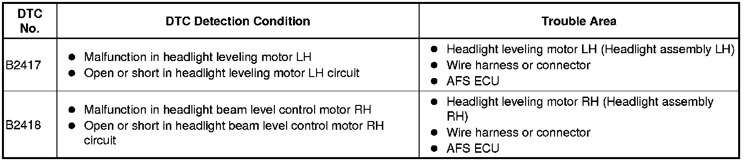 LIGHTING: LIGHTING SYSTEM: B2417: Headlight Beam Level Control Motor LH Malfunction