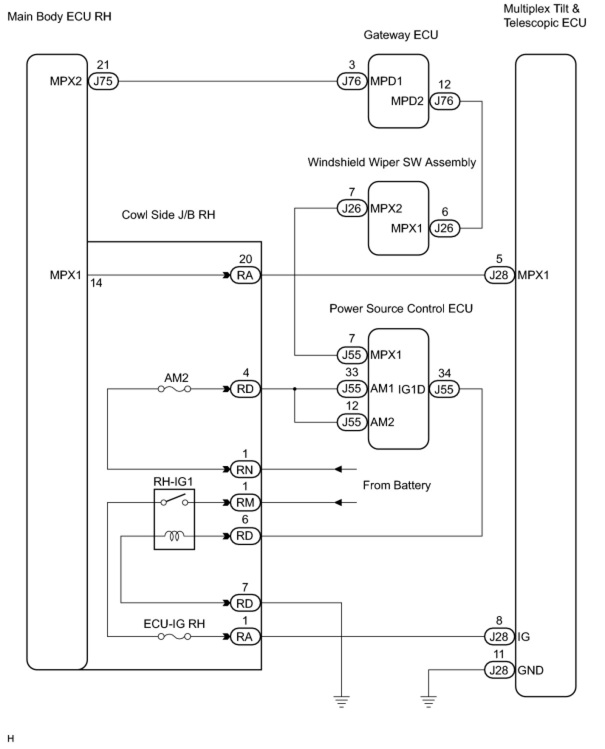 The multiplex tilt & telescopic ECU uses this signal to operate the auto away/return function.