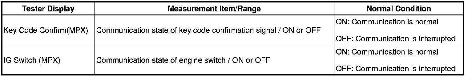 A key code confirmation signal (ON or OFF) is sent from the power source control ECU assembly to the multiplex tilt & telescopic ECU via the communication bus.