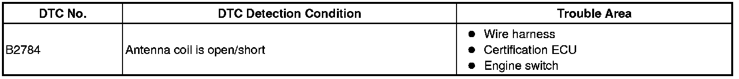 ENGINE IMMOBILIZER: ENGINE IMMOBILIZER SYSTEM: B2784: Antenna Coil Open / Short