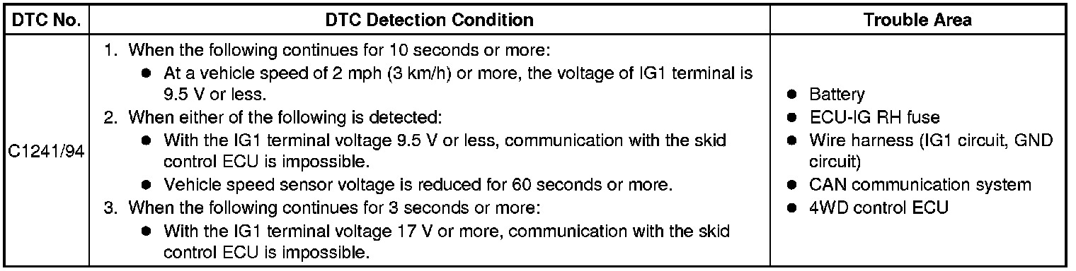 UF1AE TRANSFER: FOUR WHEEL DRIVE CONTROL SYSTEM: C1241/94: Low Power Supply Voltage