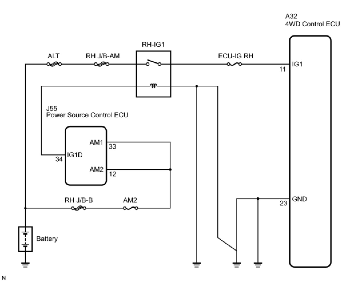 4. INSPECT 4WD CONTROL ECU (IG1 TERMINAL VOLTAGE)