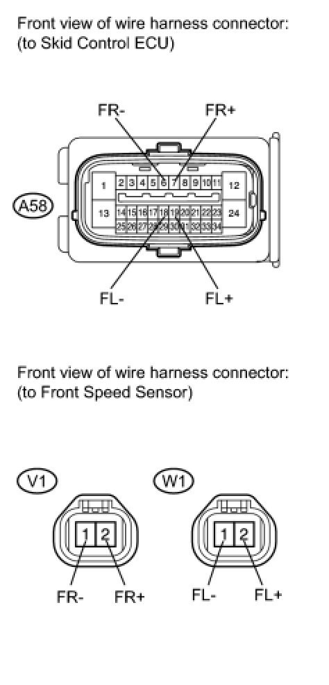 (c) Disconnect the front speed sensor connector and the skid control sensor wire.