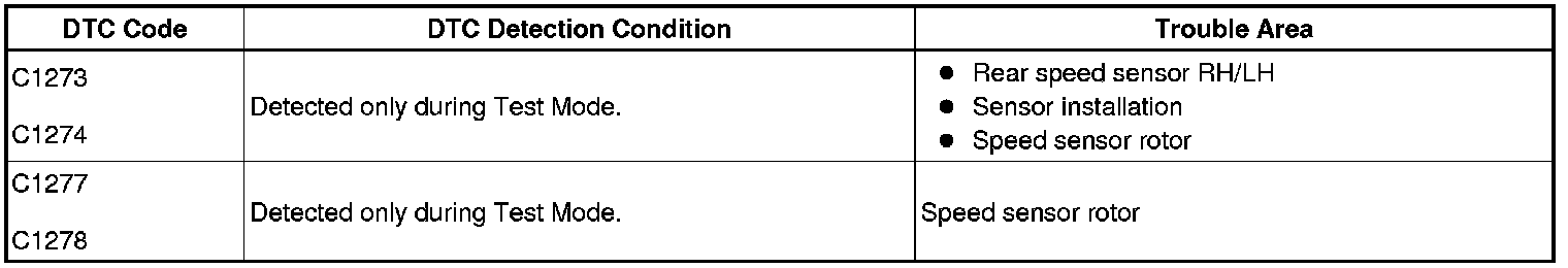 DTC C1278 - Abnormal Change in Output Signal of Rear Speed Sensor LH (Test Mode DTC)