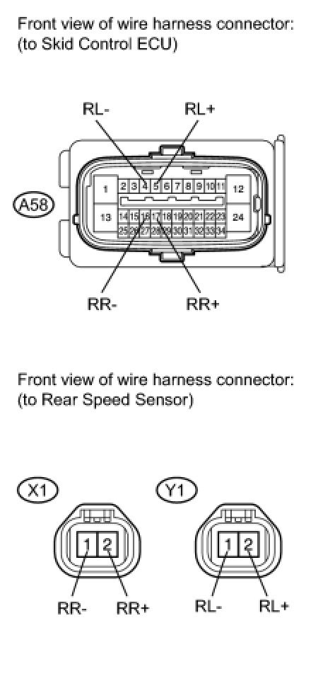 (c) Disconnect the rear speed sensor connector and the skid control sensor wire.