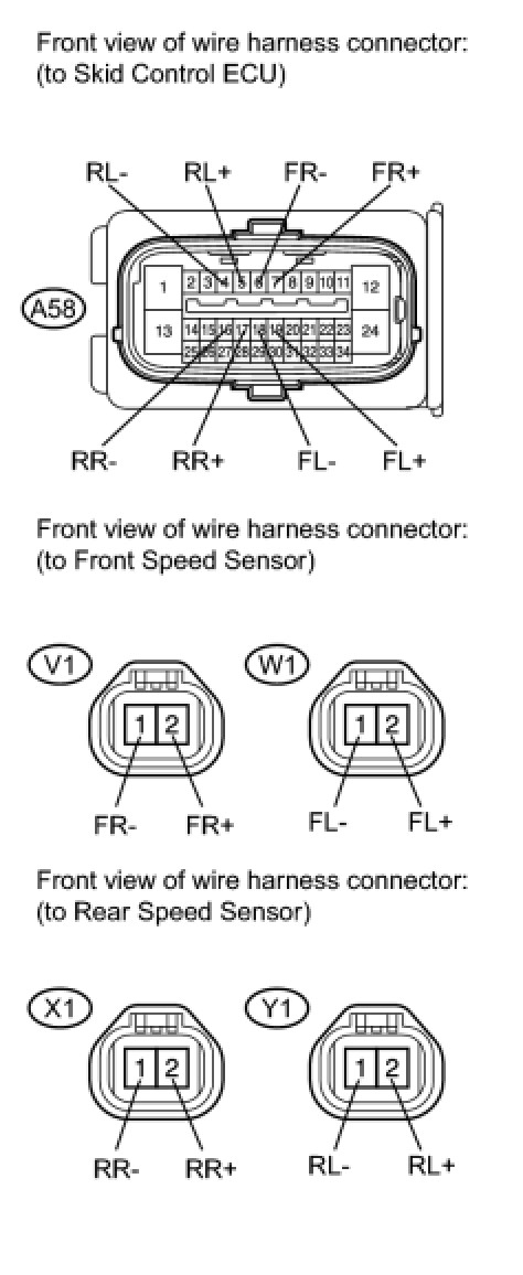 (c) Disconnect the speed sensor connector and the skid control sensor wire.