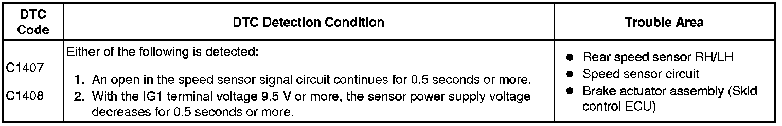 DTC C1408 - Open or Short in Rear Speed Sensor LH Circuit