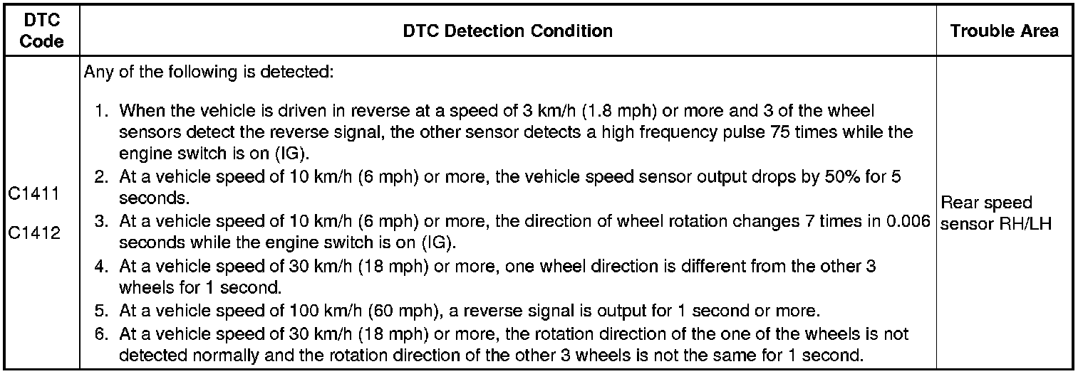 DTC C1411 - Rear Speed Sensor RH Performance
